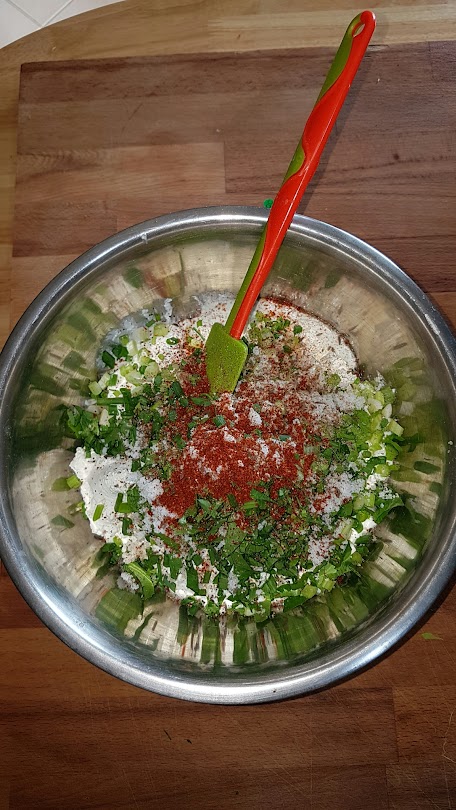 Gongonzola Stücke drunter rühren und ab unter den Grill . Schön mit Käse