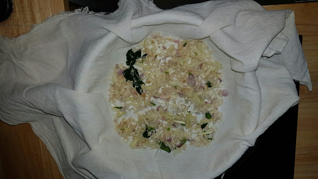 Gemüse / Gewürze in der Moulinette zerkleinern und unten rein